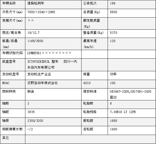道路檢測車主要技術參數(shù)