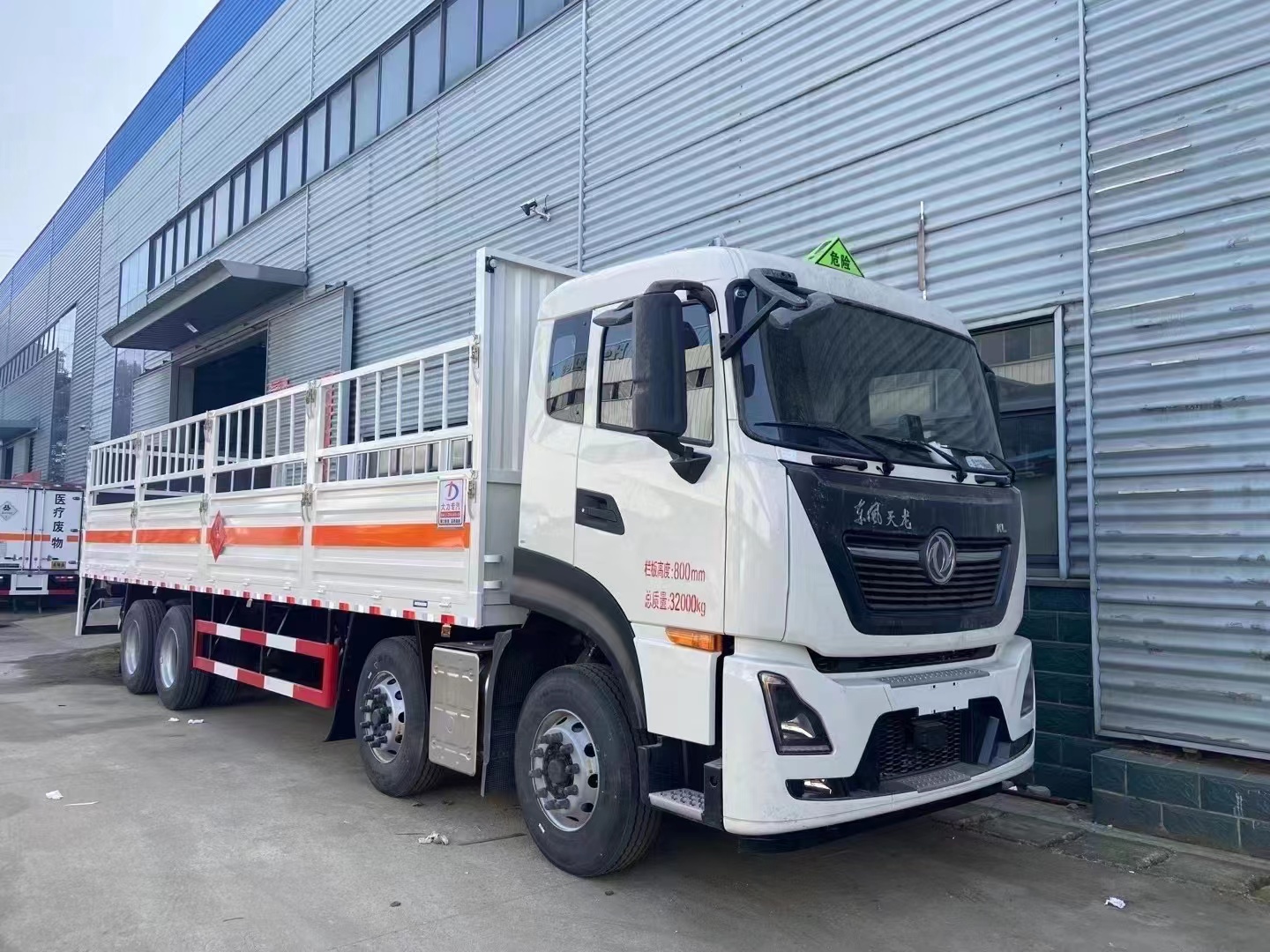 東風(fēng)天龍前四后八氣瓶車(chē),9.6米貨廂,DDI發(fā)動(dòng)機(jī),350馬力,2噸液壓尾板。