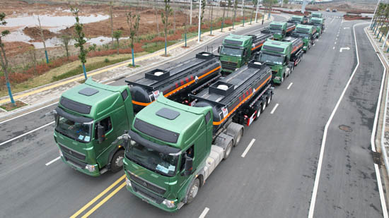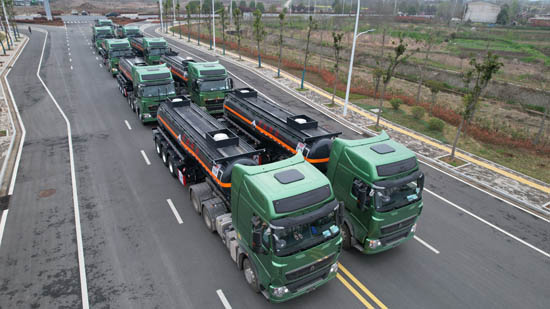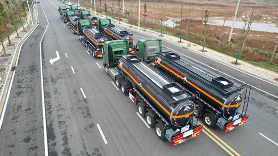 湖北大力汽車公司批量化工運(yùn)輸車發(fā)車