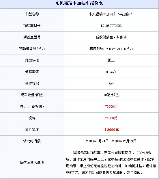東風福瑞卡加油車活動期間讓利2000元