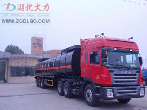 湖北大力瀝青車性能特點:具有瀝青自流卸出、泵壓卸出、泵吸裝罐、原地輸送等功能。保溫性好,運載量大,適應(yīng)性強。