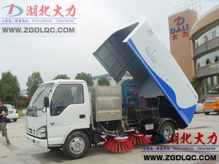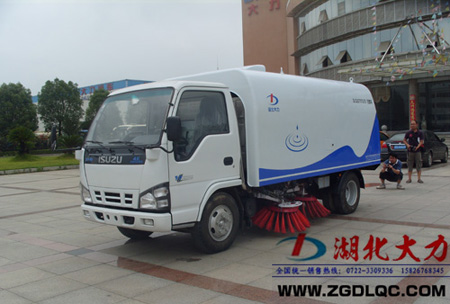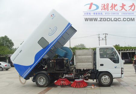 DLQ5070TSLE3 型掃路車采用慶鈴NKR77LLNACJAY 型二類汽車底盤改裝,加裝動(dòng)力系統(tǒng)、風(fēng)機(jī)傳動(dòng)系統(tǒng)、灑水系統(tǒng)、液壓系統(tǒng)、電氣系統(tǒng)、清掃作業(yè)裝置、副車架、垃圾箱等改裝而成,排放達(dá)到歐Ⅲ標(biāo)準(zhǔn)。其主要配套件:主、副發(fā)動(dòng)機(jī)均為基于五十鈴技術(shù)的柴油發(fā)動(dòng)機(jī)、寧波中意擺線馬達(dá)、中法合資的電控元件等;垃圾箱的傾翻、垃圾箱后門的開和關(guān)、掃盤的旋轉(zhuǎn)、吸嘴的升降均采用液壓傳動(dòng),電、液集中控制;主要液壓元件采用優(yōu)質(zhì)進(jìn)口件,整機(jī)性能良好、可靠。該車采用以吸為主、吸掃結(jié)合、濕式除塵的工作原理對(duì)路面進(jìn)行清掃作業(yè),具有清掃效率高,二次污染小,維修方便快捷等特點(diǎn),是城市道路、高速公路、機(jī)場、碼頭等地面理想的清掃、保潔作業(yè)設(shè)備,具備地面清掃、深坑清污等功能,是一款一機(jī)多用的設(shè)備。