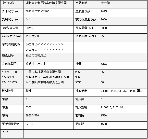 底盤:EQ1070T35DJ3AC,發(fā)動機(jī):YC4F115-30 YZ4DA3-30