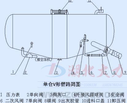 6、卸料裝置:可將裝料罐體與儲存塔(倉)管道相連,由蝶閥控制,用于輸送物料。