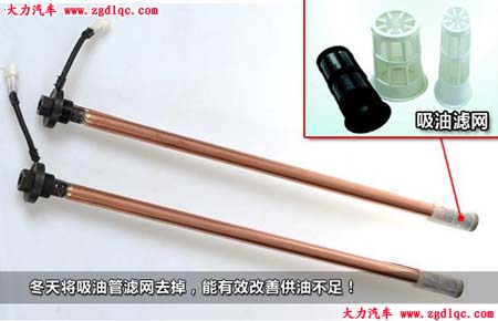 油箱探管底部通常出廠時安裝有附加濾網(wǎng),建議車輛入冬應提前清洗油箱,由于柴油低溫稠化,很難通過濾網(wǎng),應將其拆除。目前主流卡車的油箱探管與燃油表傳感器設計成一體,拆裝時注意拿取方向,可以從油箱口處觀察。